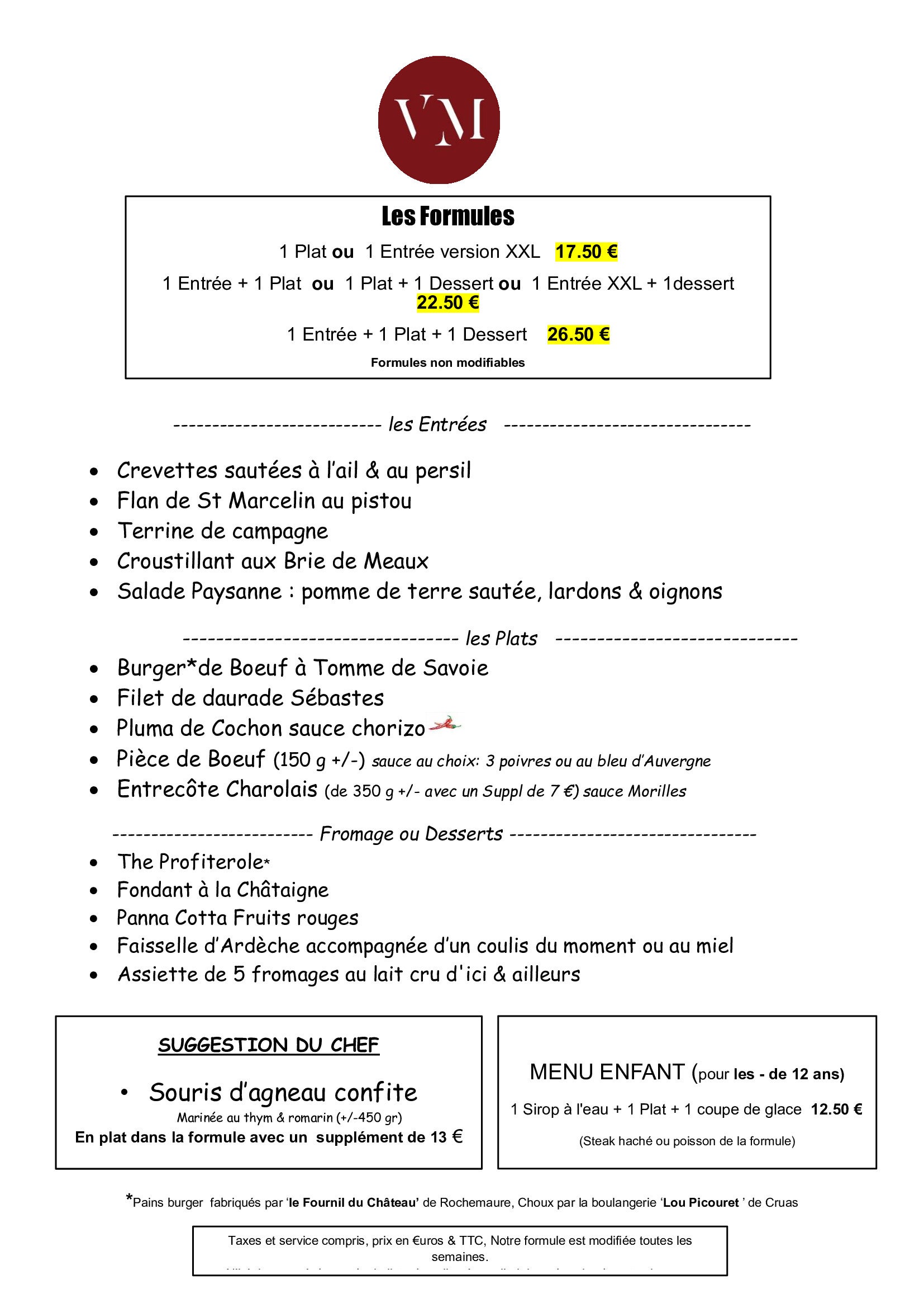 Du coté restauration, le Chef vous propose un menu varié, réalisé à partir de produit frais venus d'ici et d'ailleurs. Nous cherchons à vous garantir un repas de qualité et traditionnel.